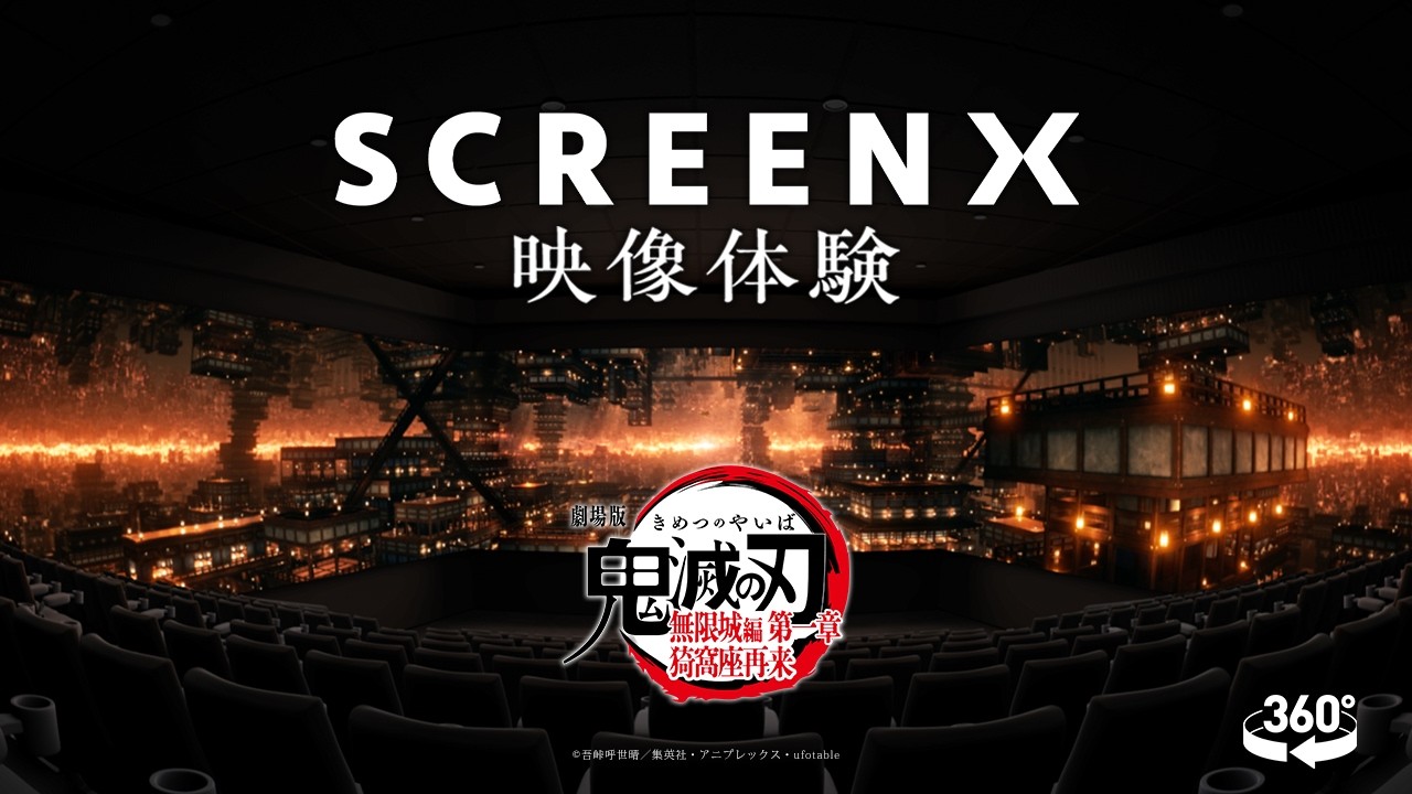 全世界的な大ヒットとなった『劇場版「鬼滅の刃」無限城編 第一章 猗窩座再来』では3面のスクリーンを使ったSCREEN Xでの上映が行われた。SCREEN Xは通常の正面のスクリーンに加え,左右に観客を取り囲むようにスクリーンが配置されることで,より没入感と臨場感のある映画体験を可能にする。ufotableのYouTubeチャンネルでは,360度動画によってSCREEN Xでの上映の様子を疑似体験することができる。