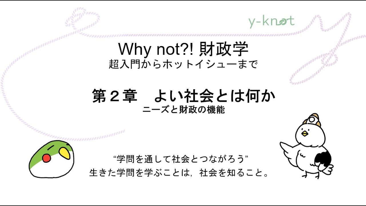 よい社会とは何か――ニーズと財政の機能 Chapter structure 予習課題 ①政府の予算を調べて「あなたにとっていらない予算項目」をあげてみよう。 ②あなたが学生代表として政府に予算を要求するとしたら,どんな内容を要求するか,政府の予算を調べて考えてみよう。 動画