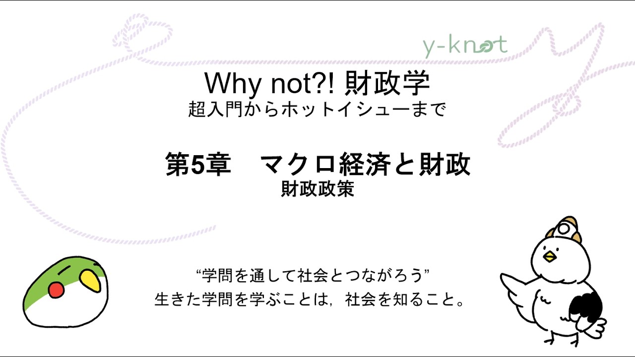 マクロ経済と財政――財政政策 Chapter structure 予習課題 ①1990年以降の日本や世界の主な景気変動はどのように発生したのか,調べてみよう。 ②①で調べた不況やショックが発生した際に,日本政府の財政支出がどのように変化したのか,調べてみよう。 動画