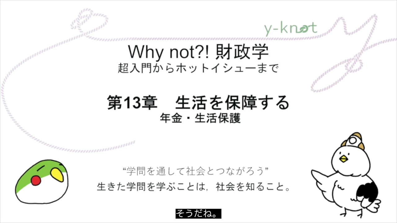 生活を保障する――年金・生活保護 Chapter structure 予習課題 ① 厚生労働省の「公的年金シミュレーター」で,自分の年金見込み受給額を調べてみよう。 https://www.mhlw.go.jp/stf/kouteki_nenkin_simulator.html ② 「生活保護」とはどのような制度か,厚生労働省や身近な自治体のウェブサイトで調べてみよう。 動画